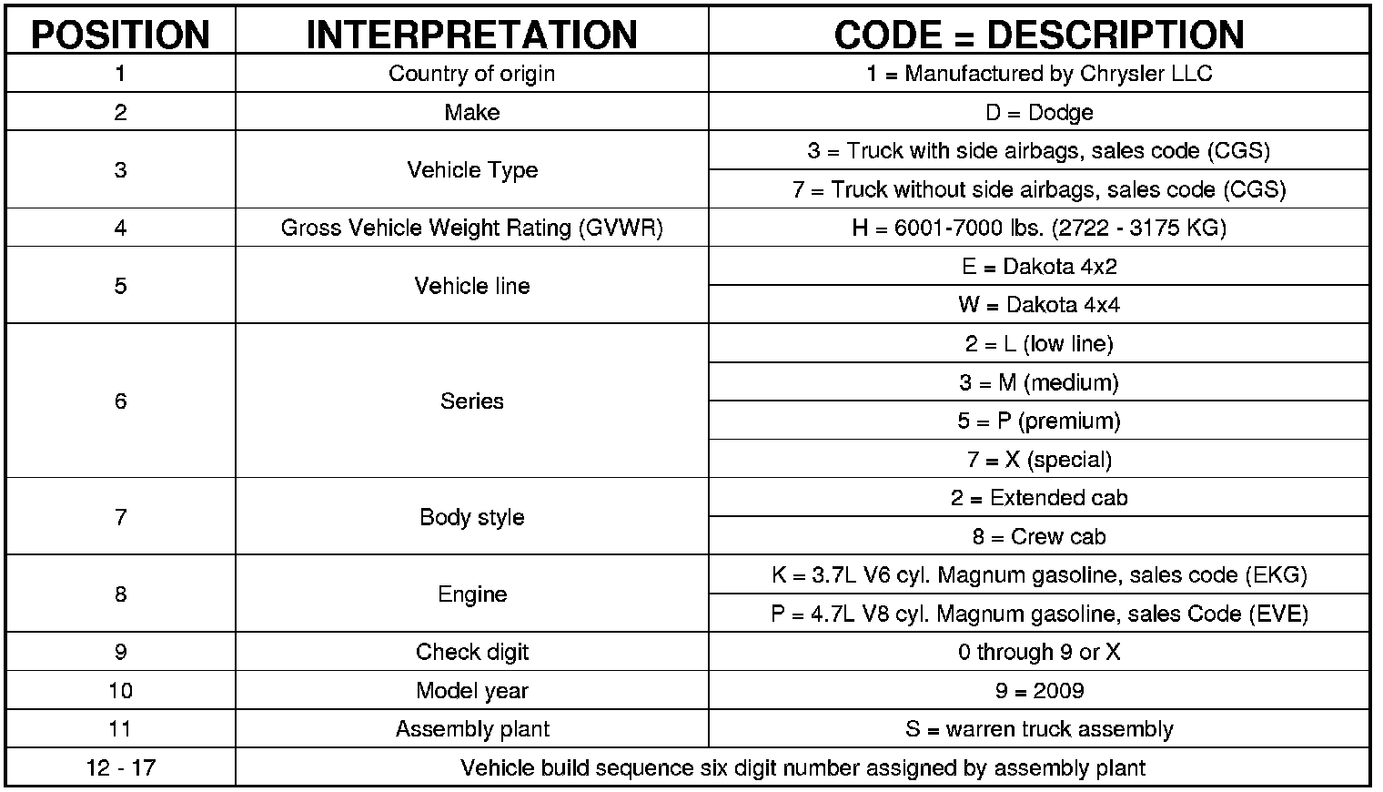 VIN DECODING INFORMATION