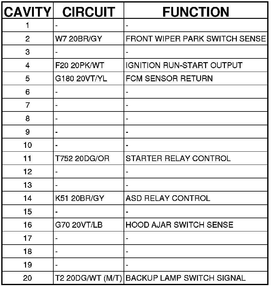 Connector C2 - (HEADLAMP AND DASH) 20 WAY