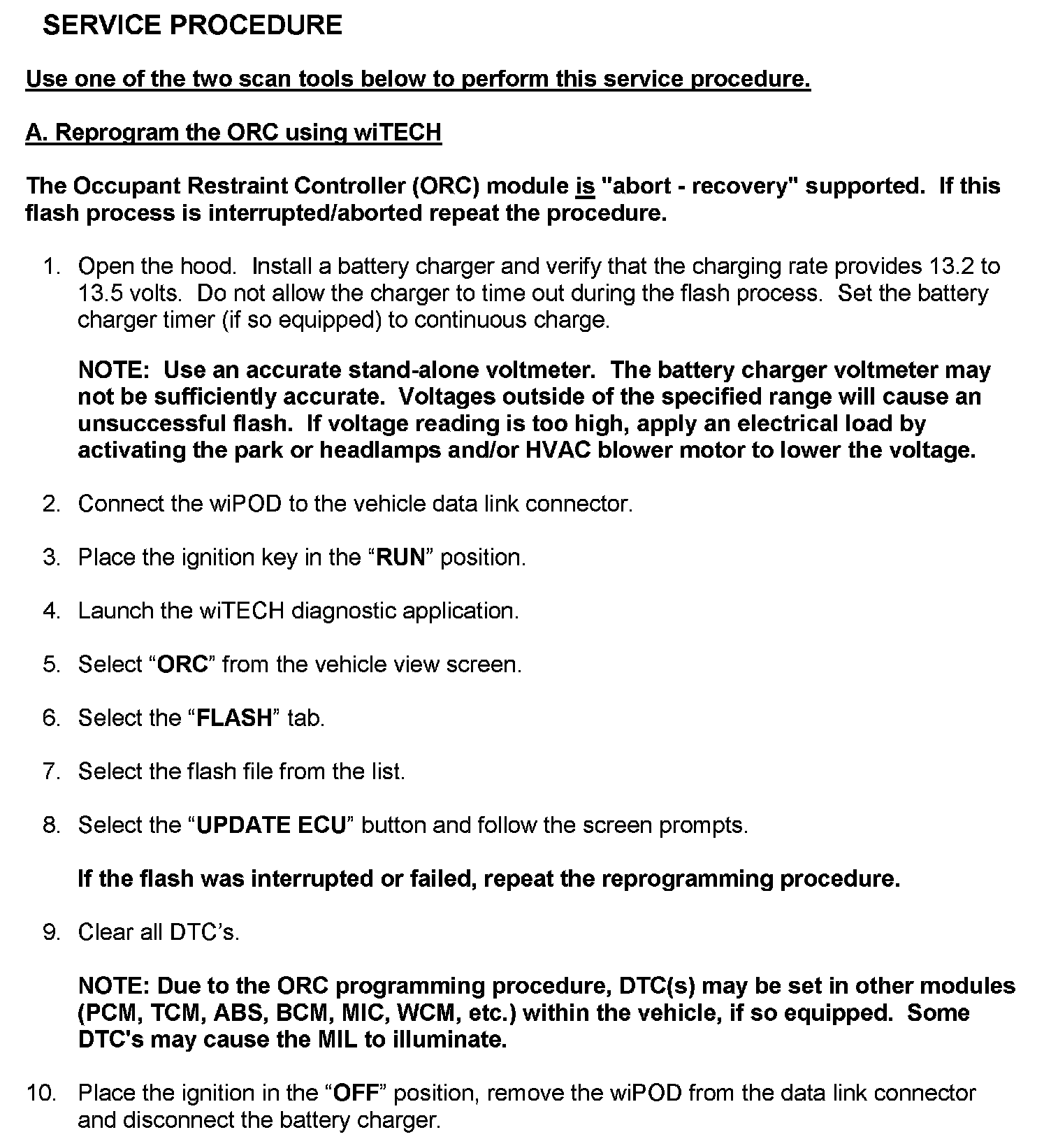 ^ To correct this condition, the Occupant Restraint Controller (ORC) module must be reprogrammed (flashed).