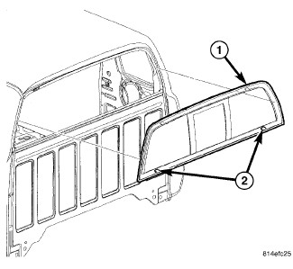 16. On club cab models, install the upper c-pillar trim (2) C-Pillar Trim Panel-Installation