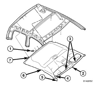 6. Install the headliner (6). Headliner - Installation