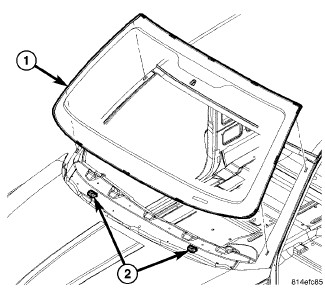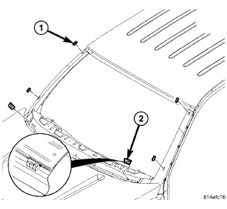 10. Install the windshield molding retainer (1) and install the screws (2).