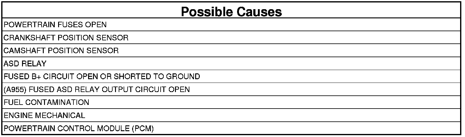 NOTE: Verify no codes are set in the Occupant Restraint Controller. If codes are present, they may be the cause of a No Start condition.