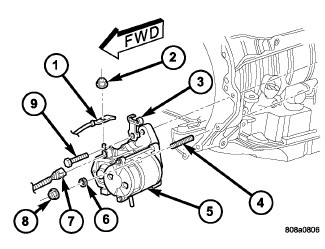4. Install the lockwasher (6), nut (8) and bolt (9). Tighten the nut (8) to 68 Nm (50 ft. lbs.).
