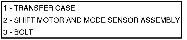 3. Position the shift motor and mode sensor assembly (2) onto the transfer case (1).