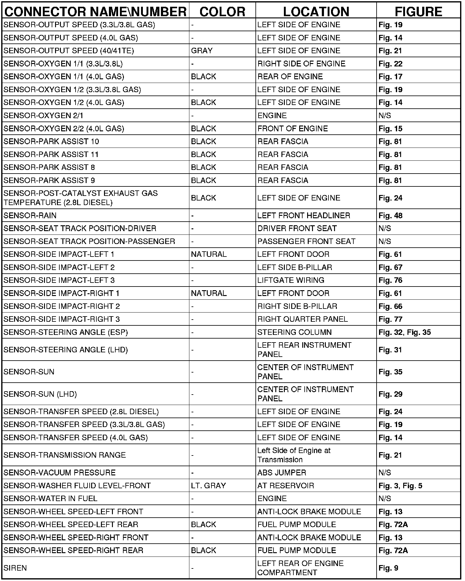 If a link on the index chart to a figure is not provided, that means that the connector and/or figure in question does NOT apply to the vehicle model selected.