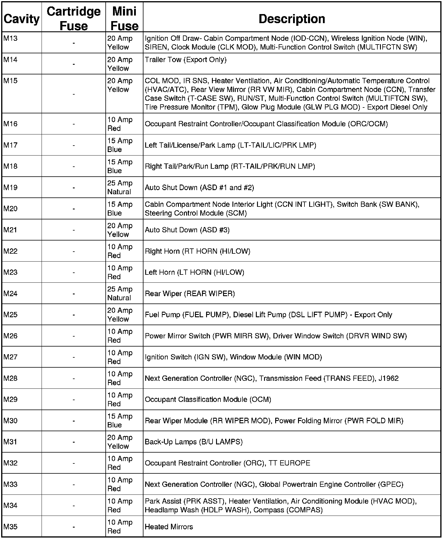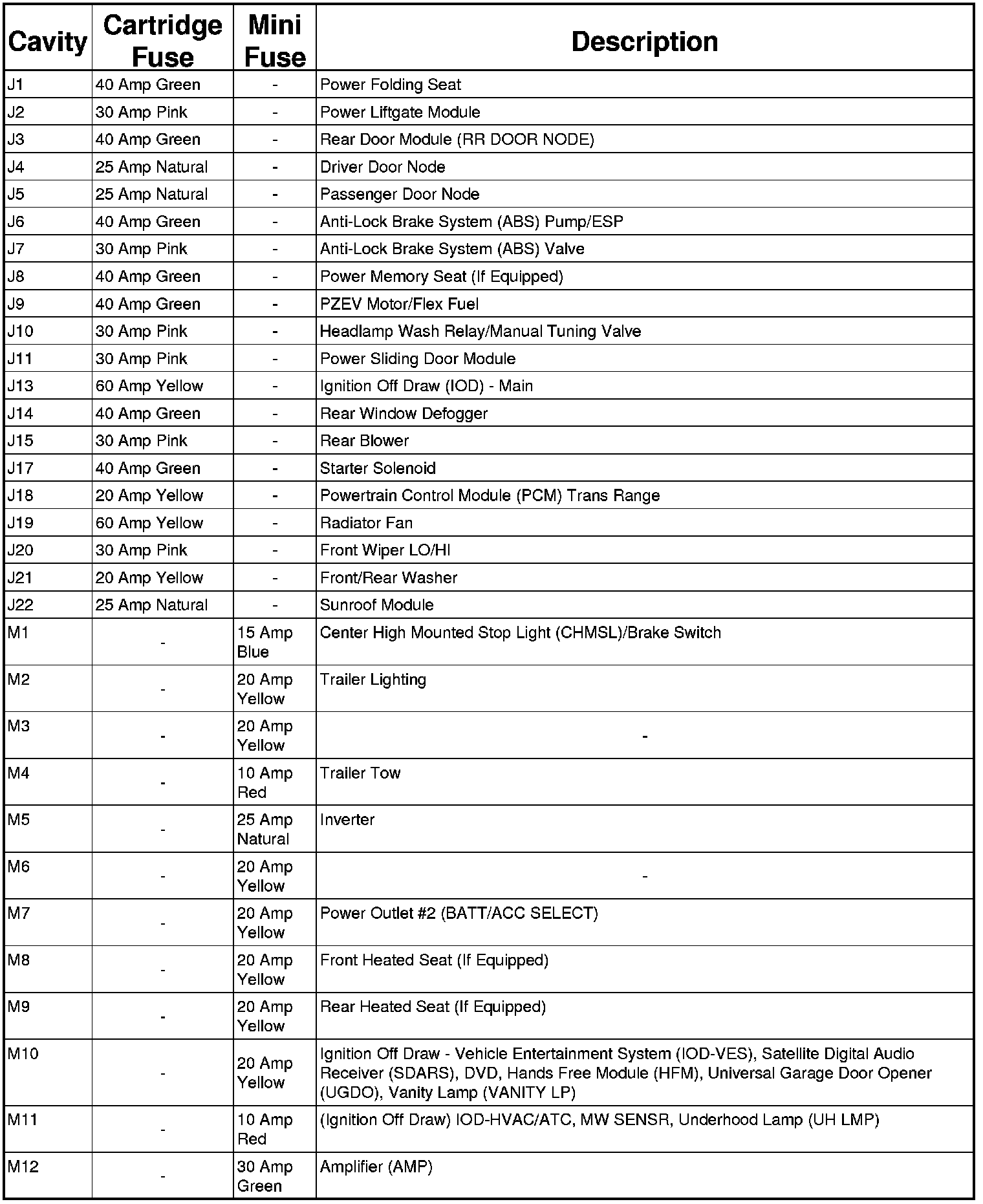 The Totally Integrated Power Module (TIPM) is located in the engine compartment near the air cleaner assembly. This center contains cartridge fuses and mini fuses. A label that identifies each component may be printed or embossed on the inside of the cover.