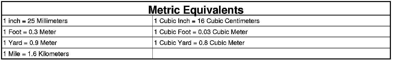 The following chart will assist in converting metric units to equivalent English and SAE units, or vise versa.