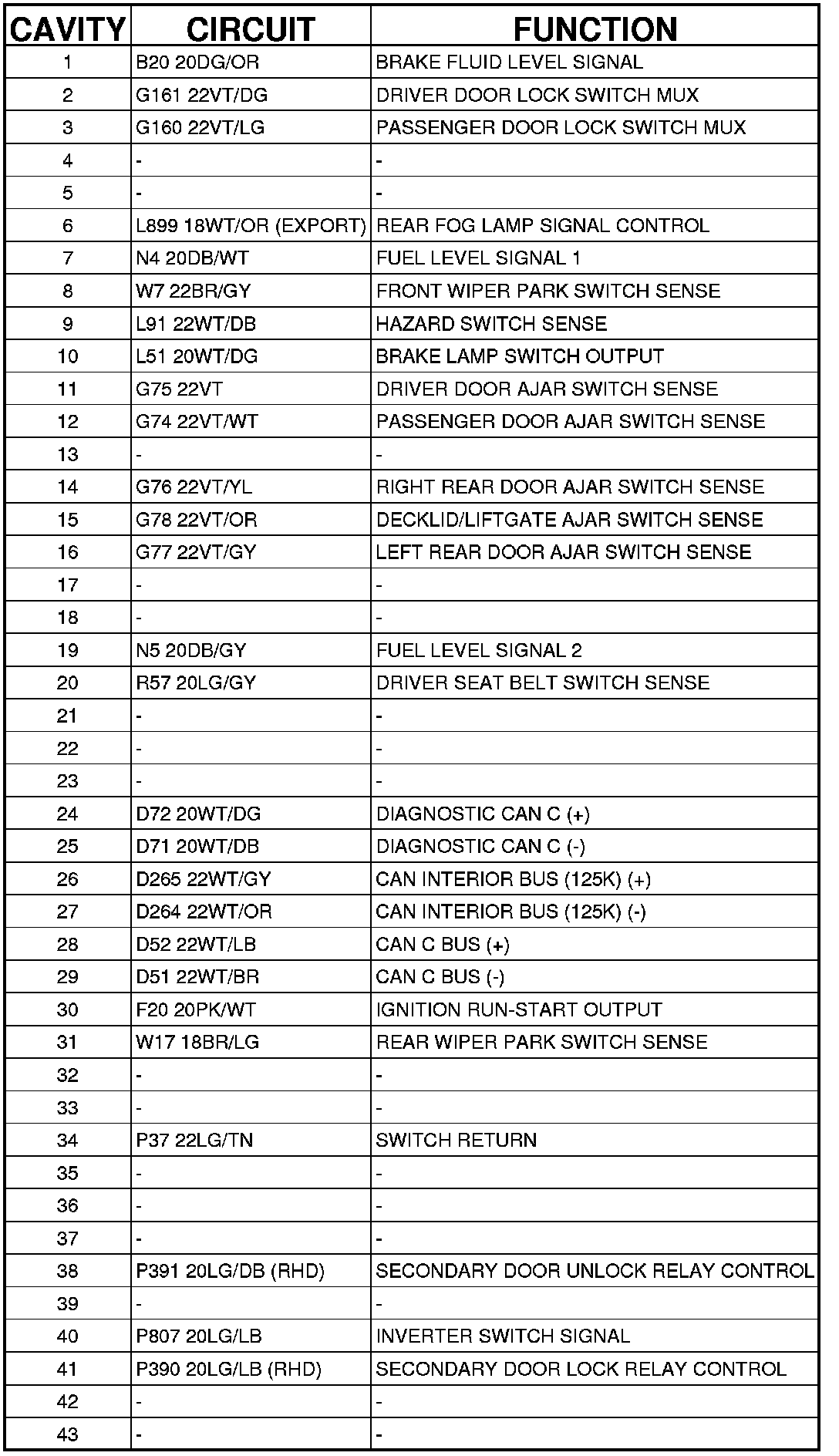Connector C7 - (HEADLAMP AND DASH) 50 WAY
