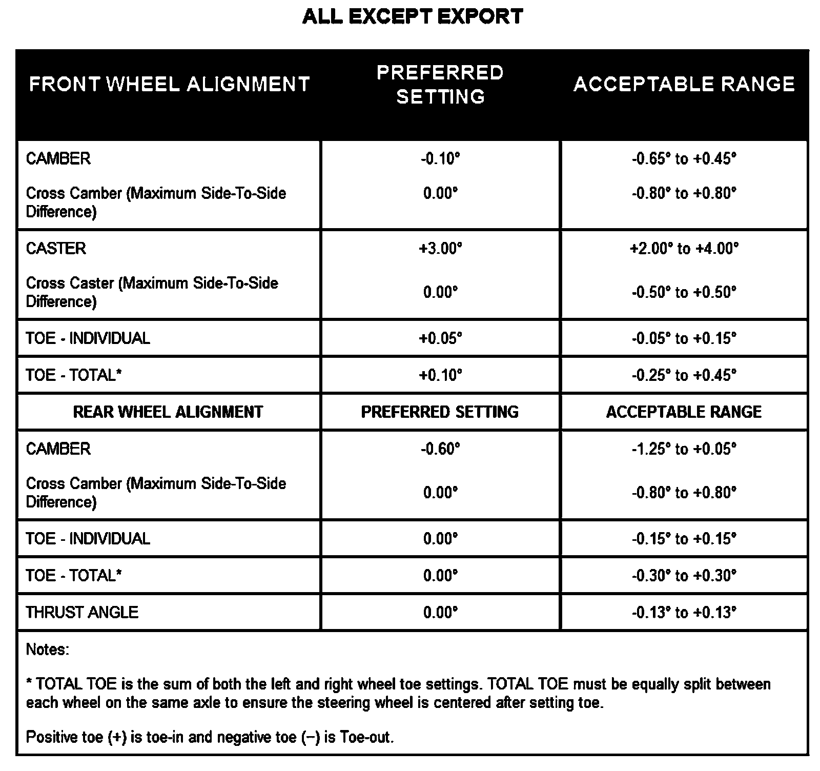Wheel Alignment Specifications