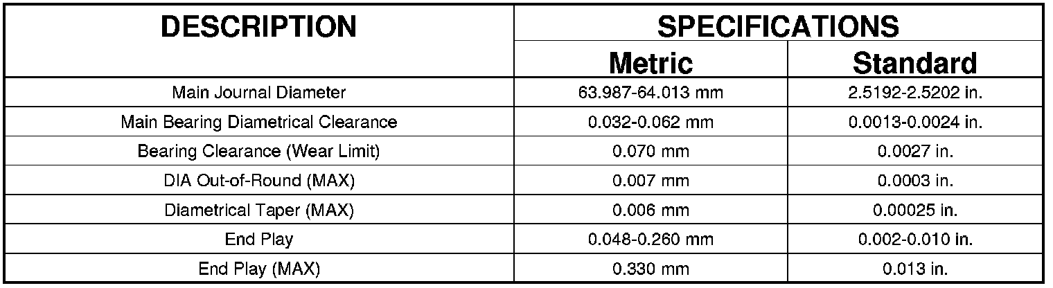 Main Journal Diameter 63.987-64.013 mm (2.5192-2.5202 in.)