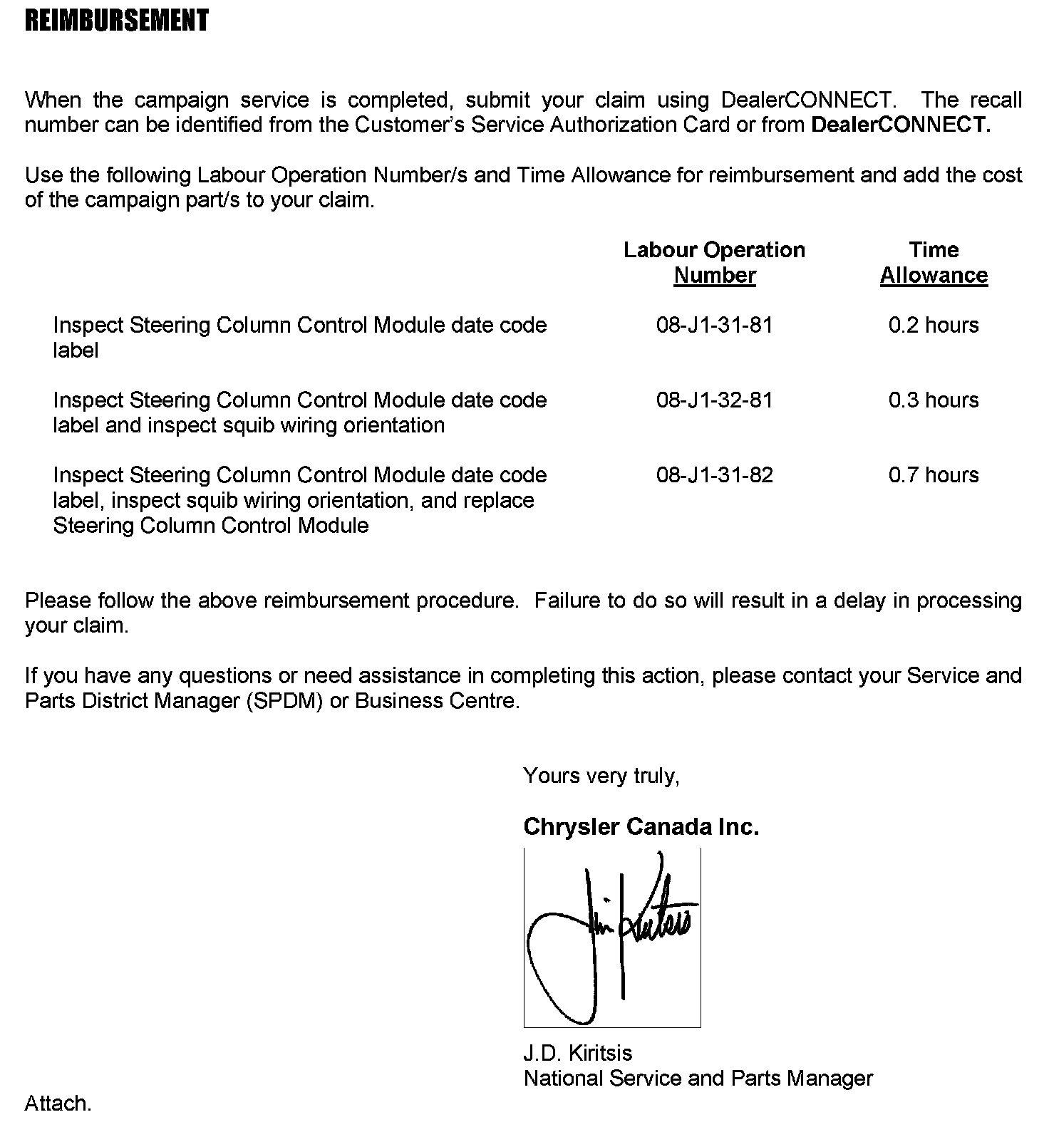 SAFETY RECALL J13 STEERING COLUMN CONTROL MODULE