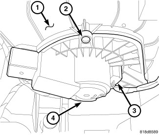 1. Position the blower motor (4) into the bottom of the HVAC housing (1).