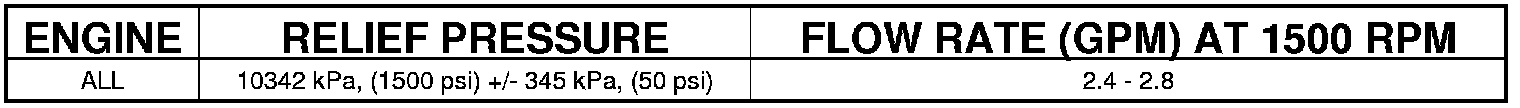 12. Increase the engine speed to 1500 RPM and read the flow meter. If the flow rate (GPM) is below specification, (refer to pump specification chart for GPM) the pump should be replaced.