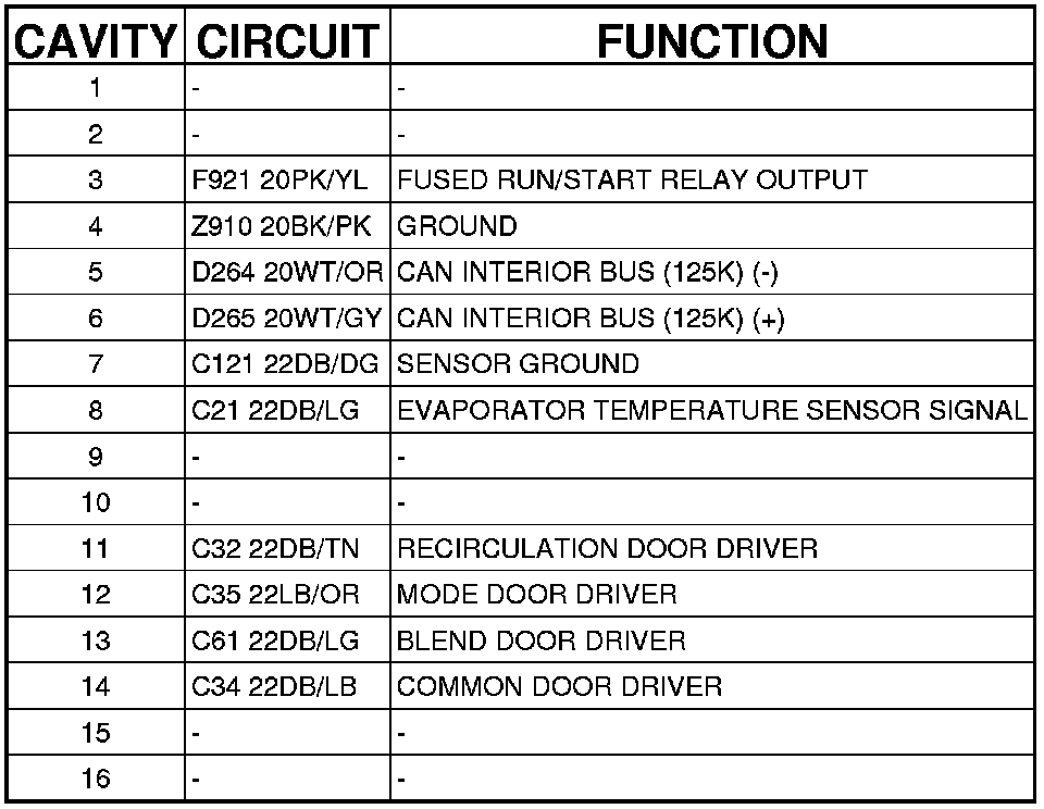A/C-Heater Control C1 (MTC) (Instrument Panel) 16 Way