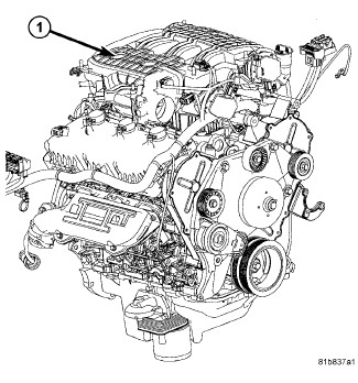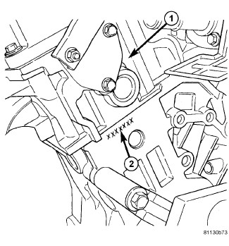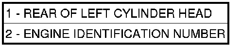 The engine identification number (2) is located on the rear of engine block just below the left cylinder head (1).