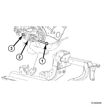 9. Remove the nut (3) from the through bolt (1) on the right side engine mount (3).