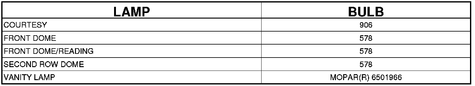 BULB APPLICATION TABLE