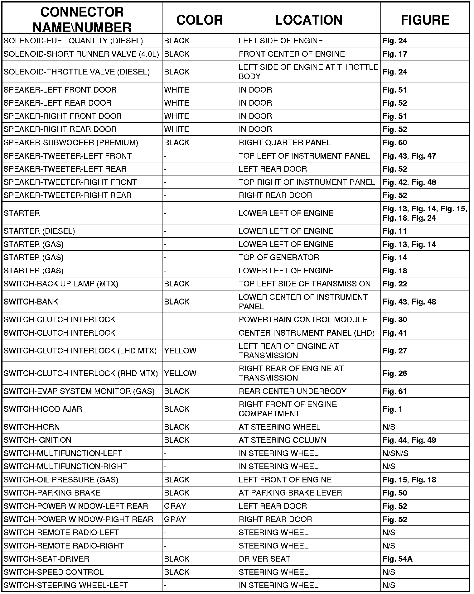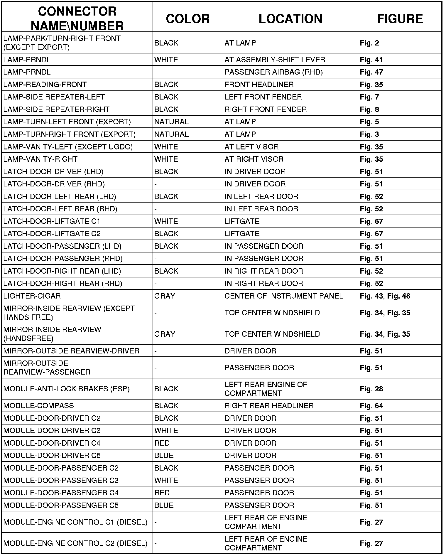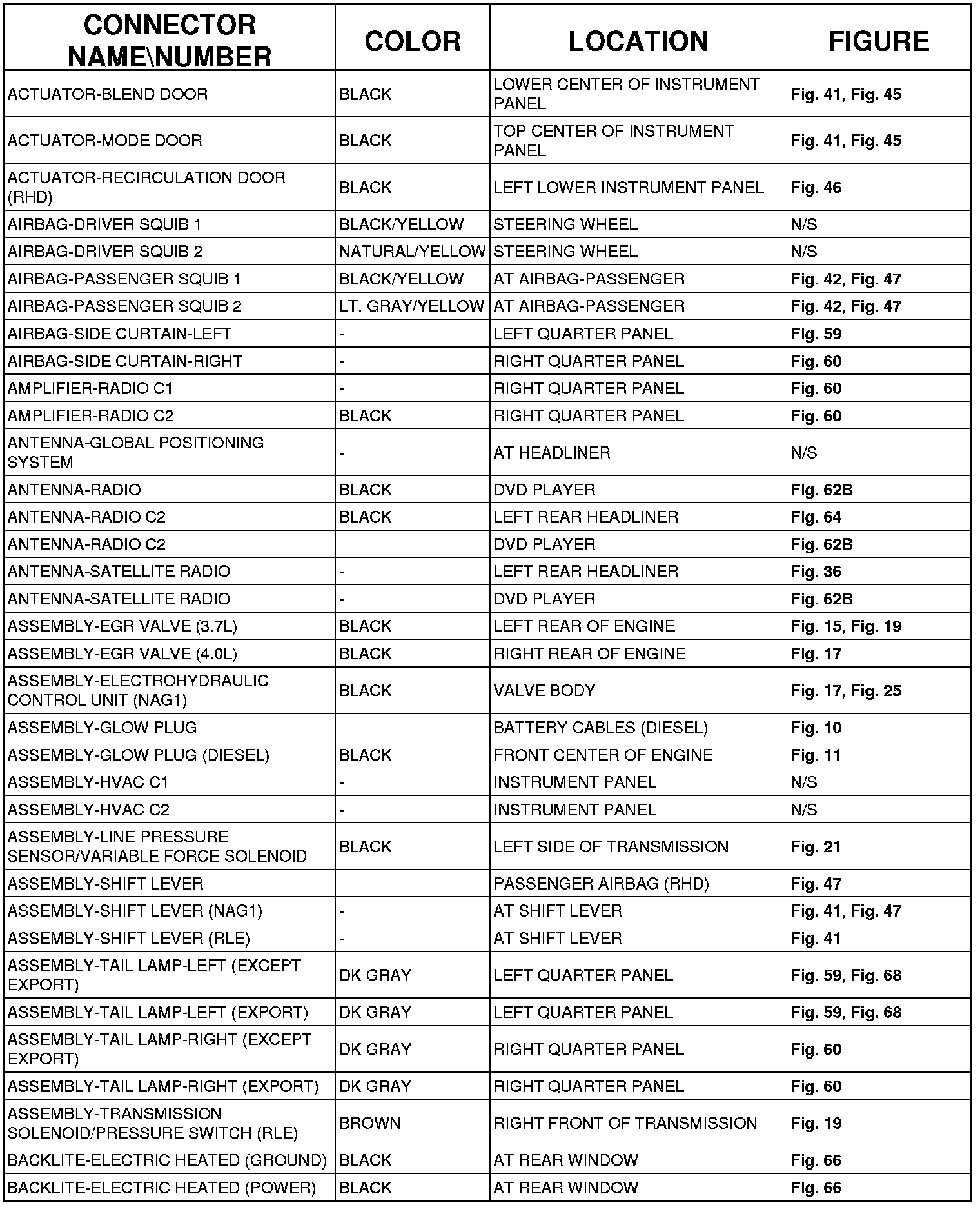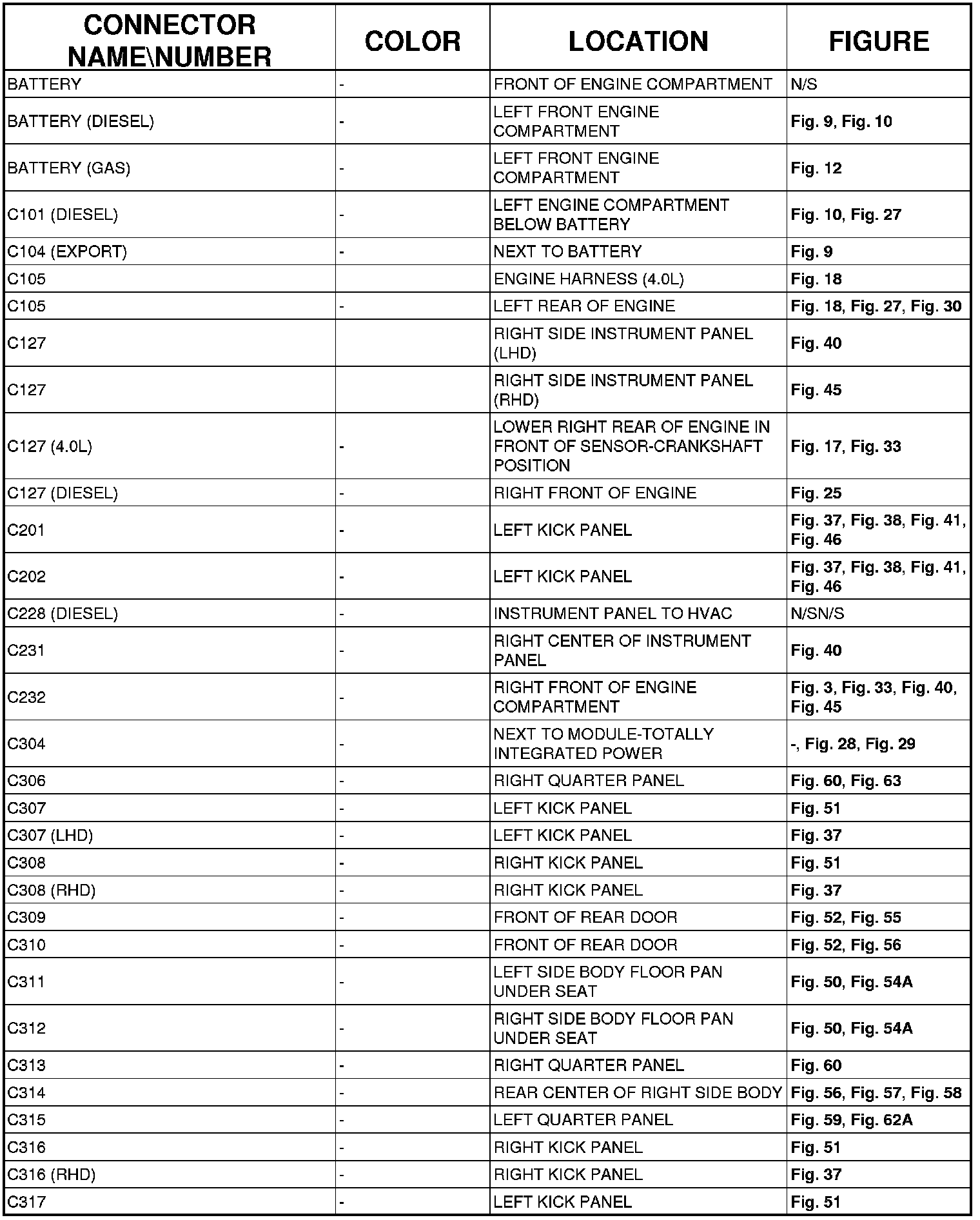 If a link on the index chart to a figure is not provided, that means that the connector and/or figure in question does NOT apply to the vehicle model selected.