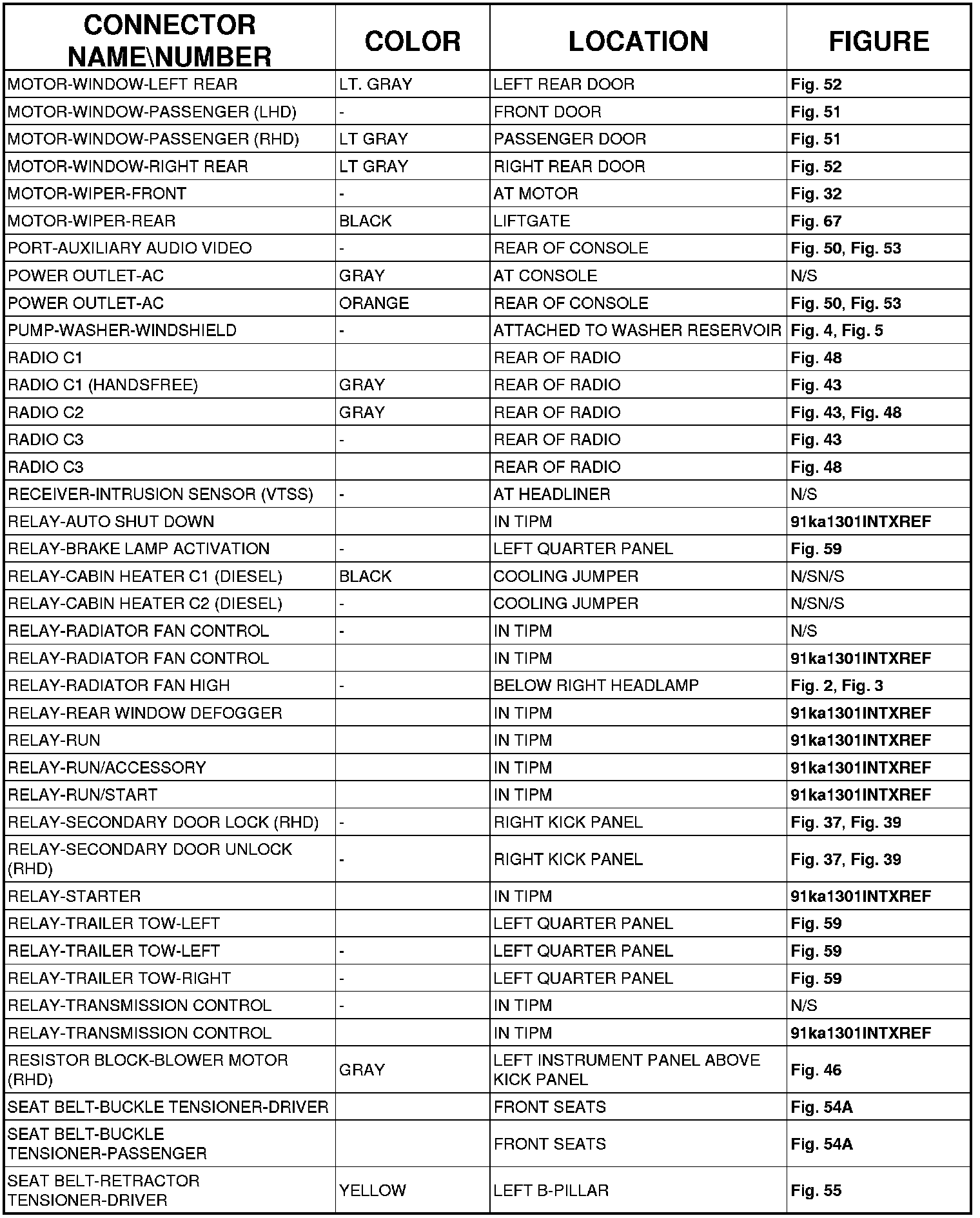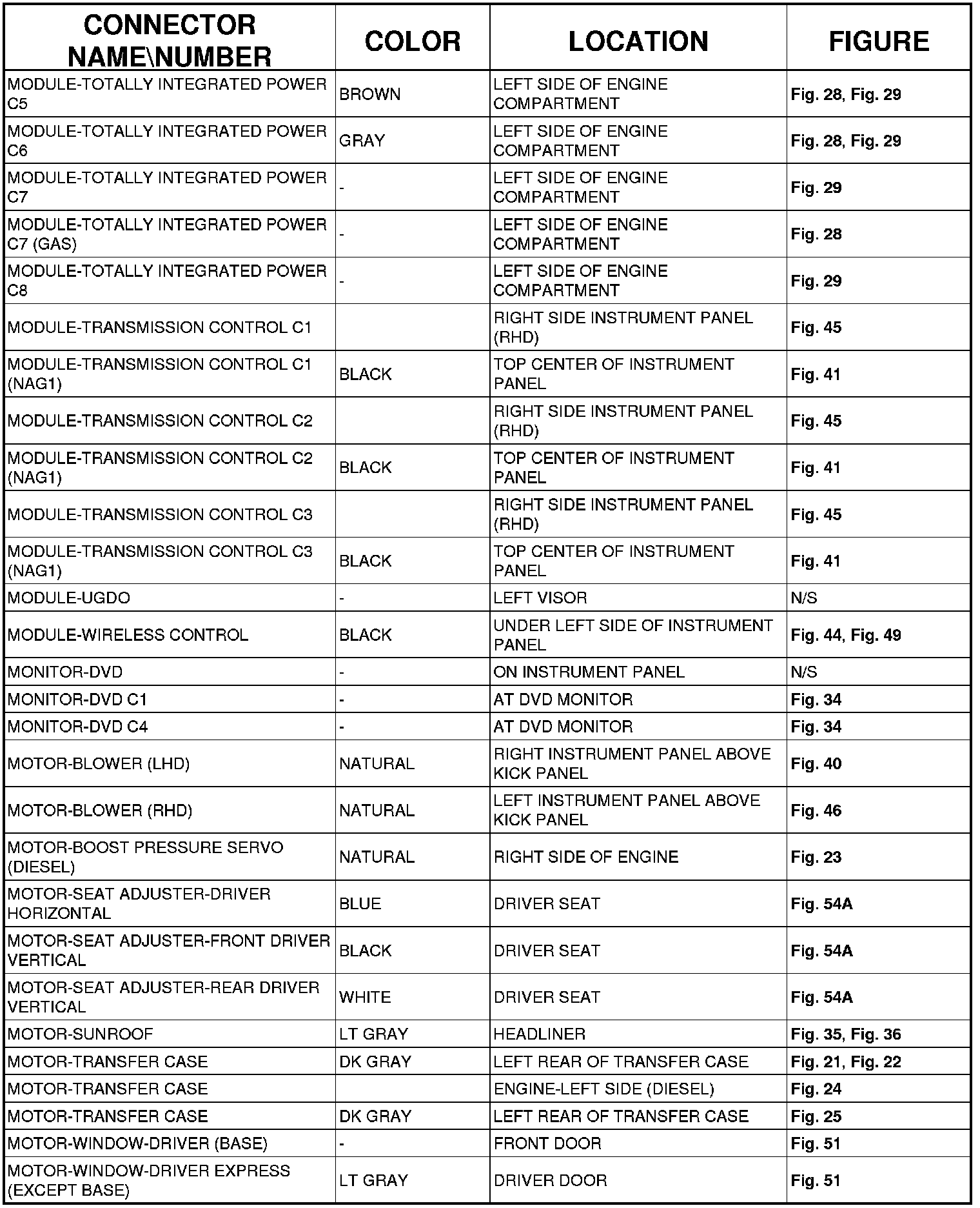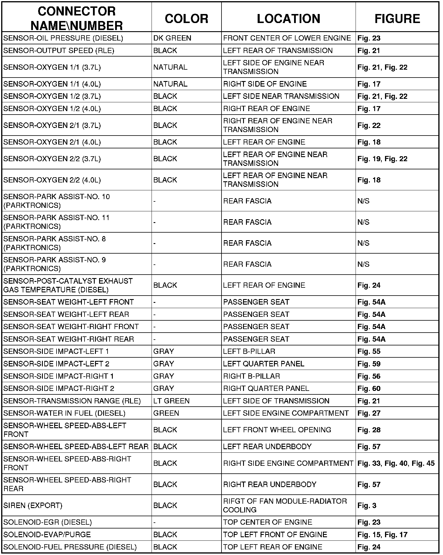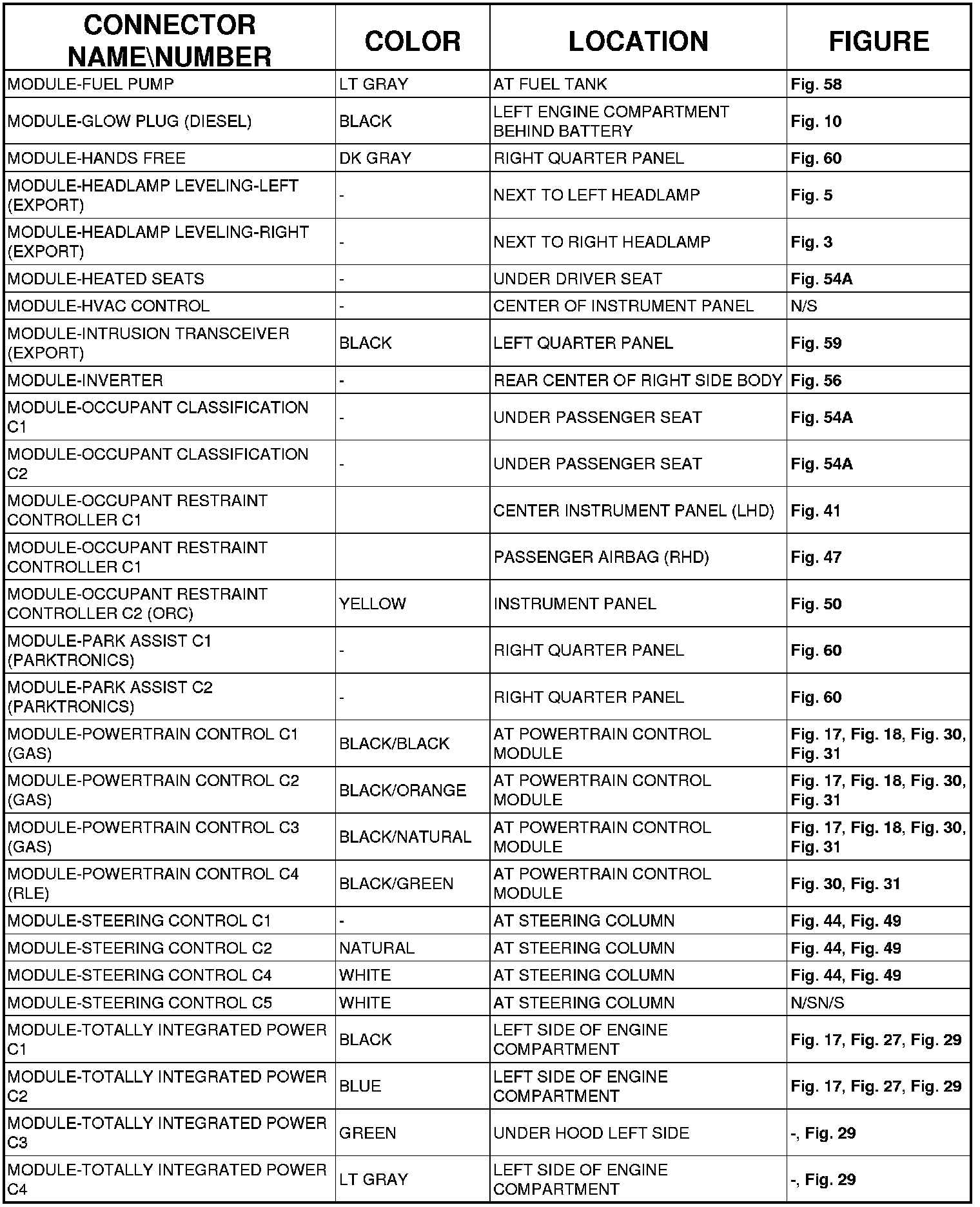 If a link on the index chart to a figure is not provided, that means that the connector and/or figure in question does NOT apply to the vehicle model selected.