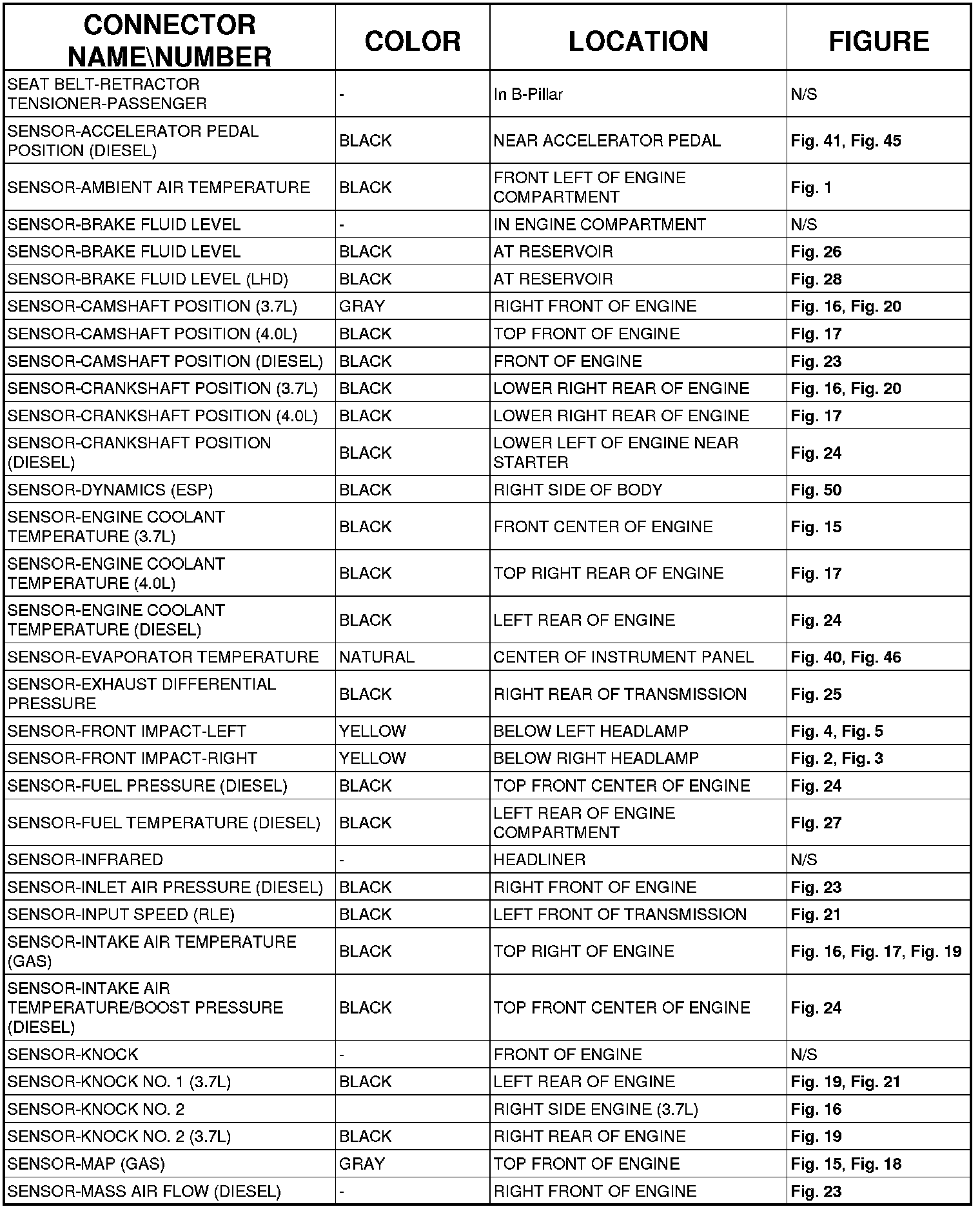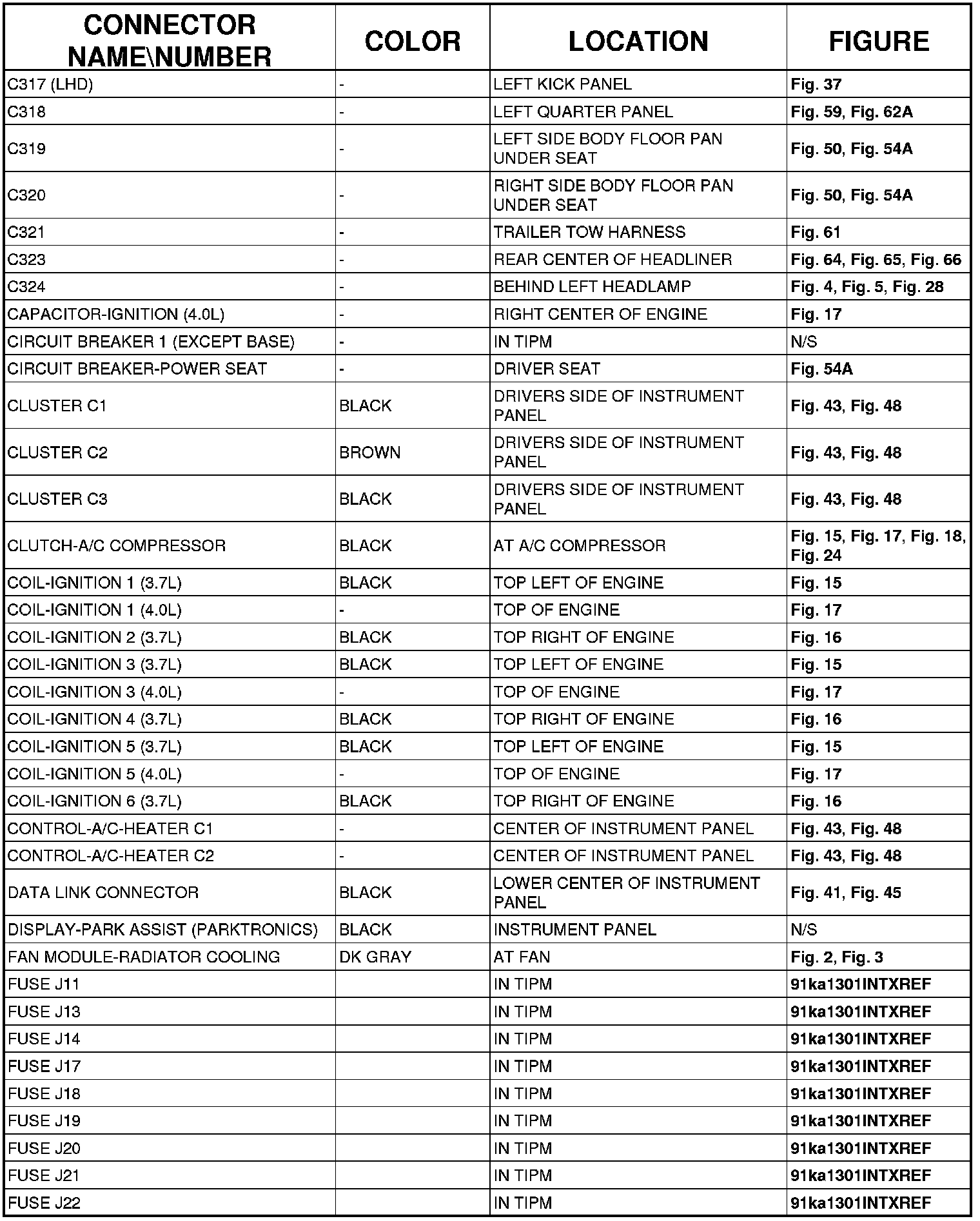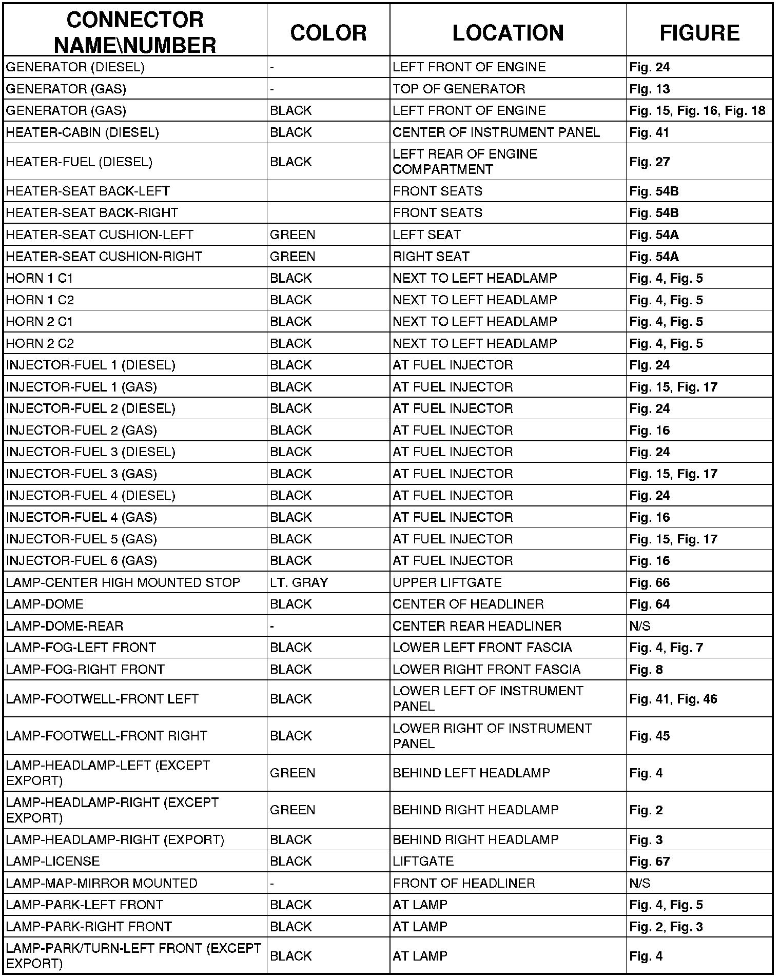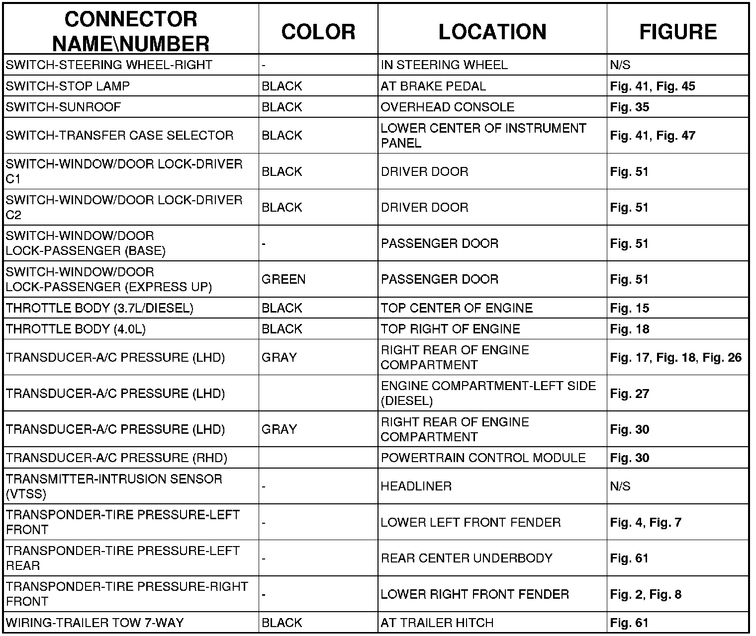If a link on the index chart to a figure is not provided, that means that the connector and/or figure in question does NOT apply to the vehicle model selected.