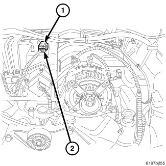 2. Disconnect electrical connector (1) at sensor (2).