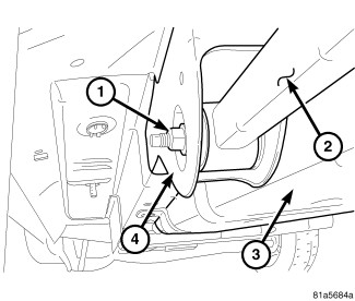 4. Remove the nut and bolt (1) from the frame rail (4) and remove the lower suspension arm (2).