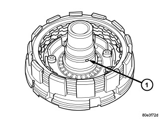 5. Check that the K1 clutch feed hole (1) in the inner hub of clutch B1 is free before installing clutch B1.
