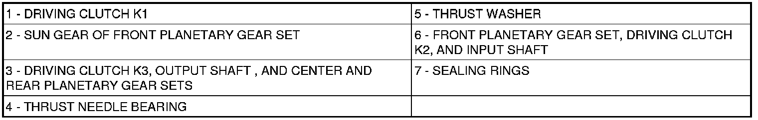 17. Install output shaft with center and rear gear set and clutch K3 (3).
