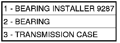 27. Install output shaft bearing (2) in rear transmission housing. Using Bearing Installer 9287 (1), install the output shaft bearing (2) into the transmission housing. The closed side of the plastic cage must point towards the parking lock gear.