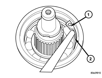 30. There must be no play between the retaining ring and the bearing. If the ring cannot be installed, a thinner ring must be used. If there is play between the ring and the bearing, a thicker ring must be installed. Retaining rings are available in thicknesses of 2.0 mm (0.079 in.), 2.1 mm (0.083 in.), and 2.2 mm (0.087 in.).