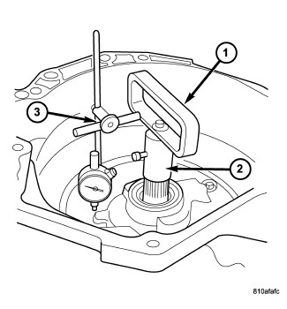32. Measure input shaft end-play.NOTE: If end-play is incorrect, transmission is incorrectly assembled, or the geartrain end-play shim is incorrect. The geartrain end-play shim is selective.
