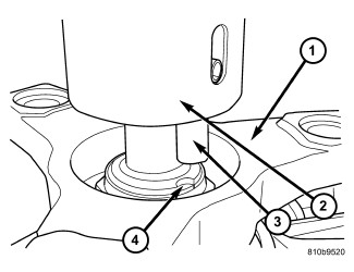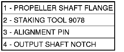 39. Rotate the Staking Tool 9078 (2) until the alignment pin (3) engages the output shaft notch (4).