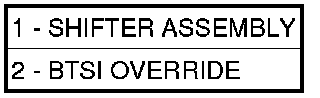 The Brake Transmission Shift Interlock (BTSI) system prevents the driver from shifting out of Park unless the service brake pedal is actuated. This feature is intended to prevent unintended acceleration caused by pedal misapplication. The BTSI system is a ""Power to Release"" shift mechanism. The system is mechanically locked in Park until power is applied to the solenoid contained within the shifter. No brake interlock adjustment is required. In the event of a solenoid problem or power loss, the shifter cannot be moved from Park unless a manual override is actuated. A BTSI override mechanism is provided with this shifter to allow the vehicle to be shifted out of PARK in the event of an electrical failure.