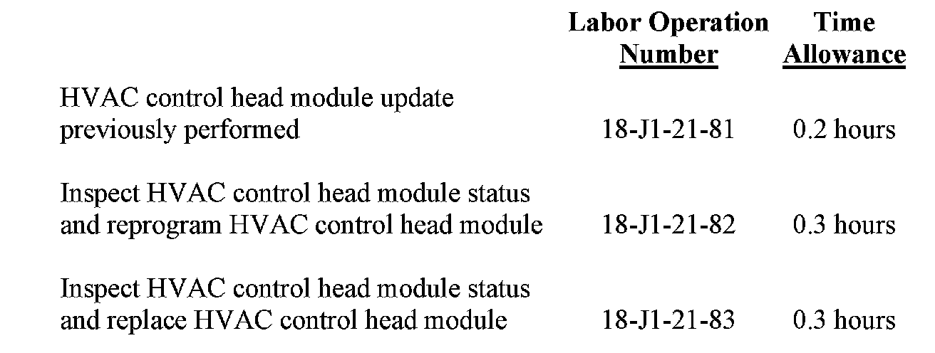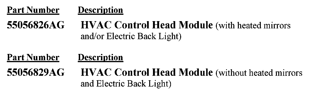 Due to the small number of involved vehicles expected to require a HVAC Control Head Module, no parts will be distributed initially. A HVAC Control Head Module should be ordered only after inspection determines that repair is required. Very few vehicles are expected to require HVAC Control Head Module replacement.