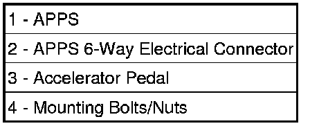 (APPS) (1) is located inside the vehicle. It is attached to the accelerator pedal assembly (3). It is used only with 3.7L V-6 and 5.7L V-8 gas engines.