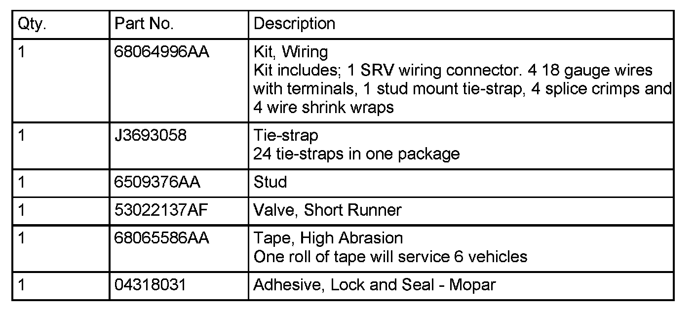 7. Using the 18 gauge wires from wiring kit p/n 68064996AA splice in SRV wires. Follow the detailed wiring procedures available in DealerCONNECT/TechCONNECT, Refer To the Wiring Tab > 8W-01 - Wiring Diagram Information > Wire > Standard Procedure.