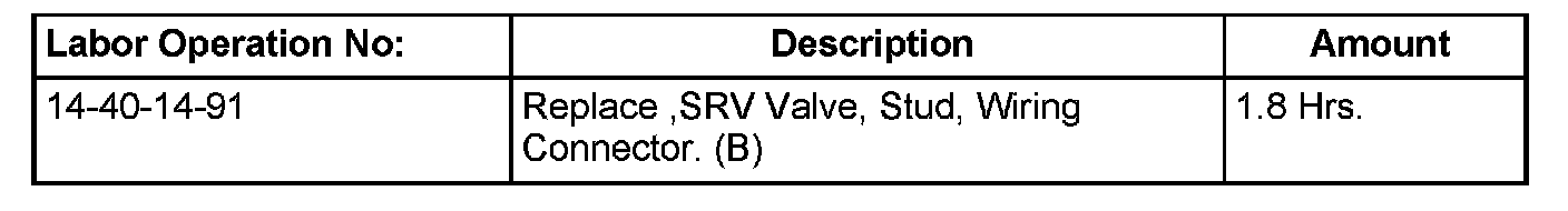 This bulletin involves replacing the Short Runner Valve (SRV), SRV connector, wiring pigtail, and adding a new stud for a tie strap.