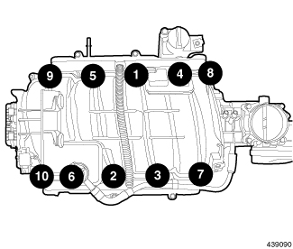 Using the sequence shown, tighten the intake manifold bolts to 12 Nm (9 ft. lbs.).