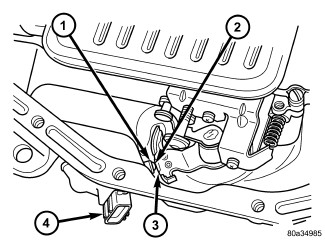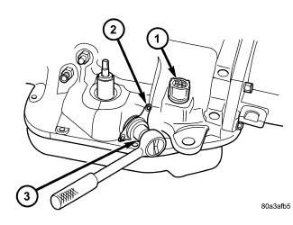 2. If necessary, install the TRS mounting bracket (2) into the transmission case. Using Adapter 8581 (3), tighten the mounting bracket to 34 Nm (300 in.lbs.).