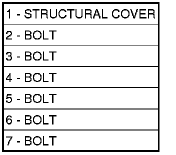 CAUTION: The structural cover must be held tightly against the corner formed by the engine and the transmission clutch housing during tightening sequence. Failure to do so may cause damage to the cover and engine noise.