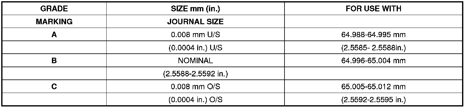Main Bearing Journal Diameter 64.988-65.012 mm (2.5585-2.5595 in.)
