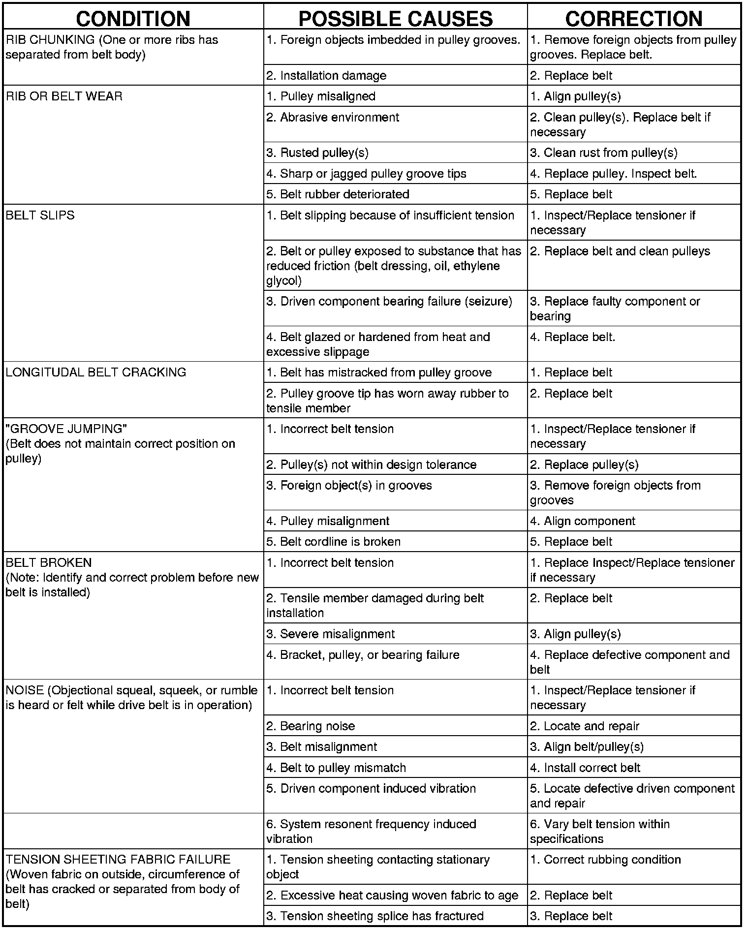 ACCESSORY DRIVE BELT DIAGNOSIS CHART