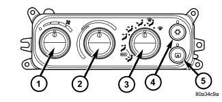 - a push button A/C on/off control (4). The Snowflake button contains an LED that illuminates when the A/C system is in operation.