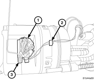 1. Push the fuel level sensor electrical terminal up into bottom of fuel pump/level sensor connector. Install the fuel level sensor signal and ground terminals to the connector.
