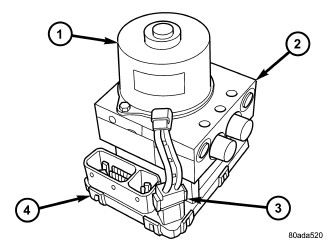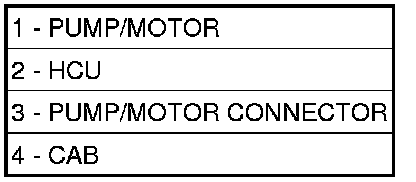 The Controller Antilock Brake (CAB) (4) is a microprocessor-based device which monitors the ABS system during normal braking and controls it when the vehicle is in an ABS stop. The CAB is mounted to the HCU (hydraulic control unit) (2) as part of the ICU (integrated control unit). The CAB uses a 24-way wiring connector on the vehicle wiring harness. The power source for the CAB is through the ignition switch in the RUN or ON position.