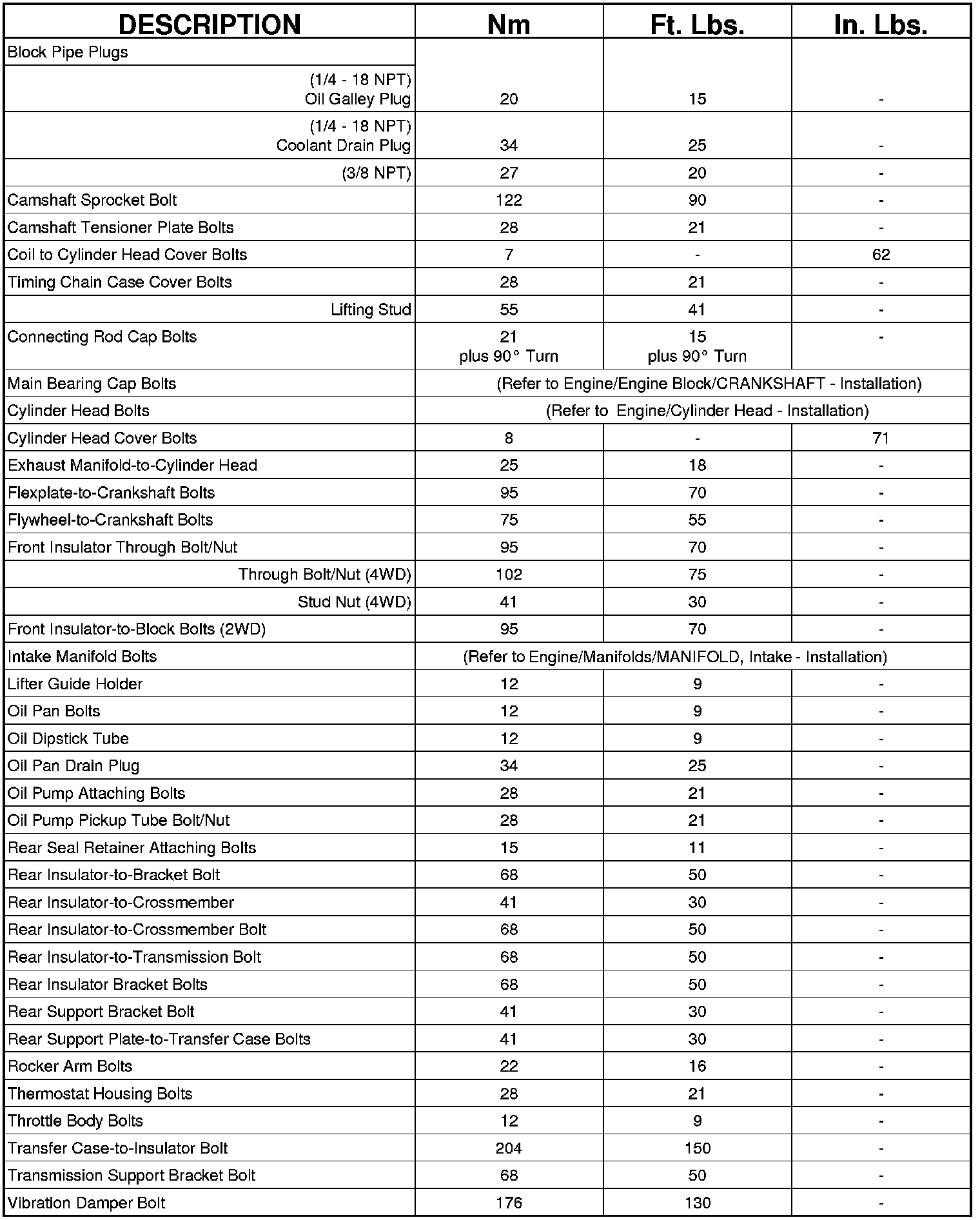 Engine Torque Specifications