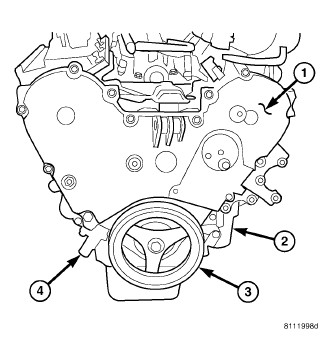 25. Install the front timing belt outer covers (1) with 14 bolts.