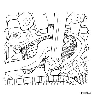 13. Install the timing belt (4) starting at the crankshaft sprocket (10) going in a counterclockwise direction. Install the belt around the last sprocket. Maintain tension on the belt as it is positioned around the tensioner pulley (11).