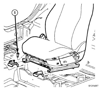 2. Install the two bolts (1) that secure the front of the seat to the body. Tighten the bolts to 70 Nm (52 ft. lbs.).